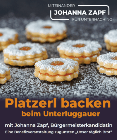 Zum vorweihnachtlichen Benefiz-Platzerlbacken mit unserer Bürgermeisterkandidatin Johanna Zapf öffnet Unterluggauer Landhausmöbel am Samstag, den 13. Dezember 2025, von 14 bis 17 Uhr seine Türen in der Hauptstraße 49 in Unterhaching….