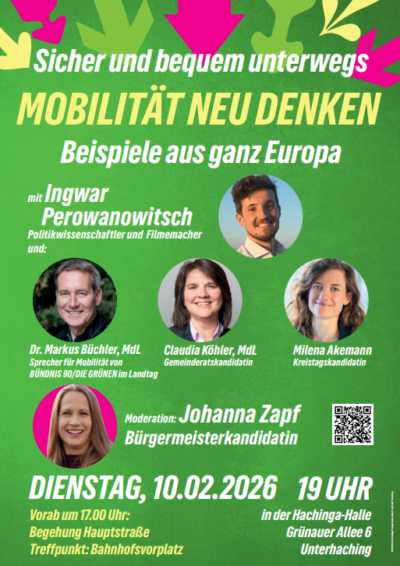 Am Dienstag, 10. Februar, 19 Uhr lädt MdL Dr. Markus Büchler den Politikwissenschafter und Filmemacher Ingwar Perowanowitsch und weitere Gäste zum Thema Mobilität in die Hachinga Halle ein. Der Experte…