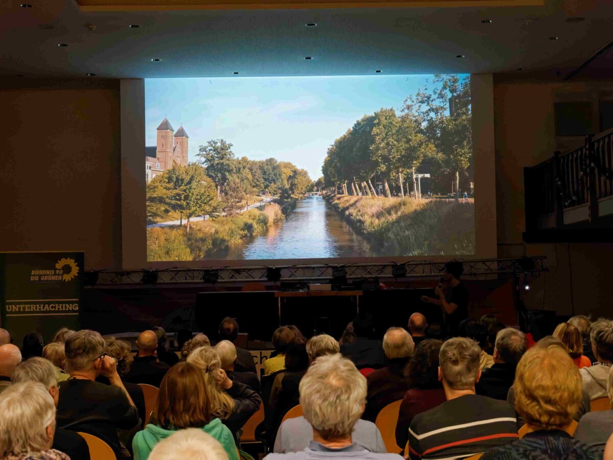 Wie kann Unterhaching die Verkehrswende gestalten und von erfolgreichen europäischen Modellen lernen? Dazu haben die Unterhachinger Grünen Ingwar Perowanowitsch zu einem Vortrag und einer Diskussion in die Hachinger Halle eingeladen.